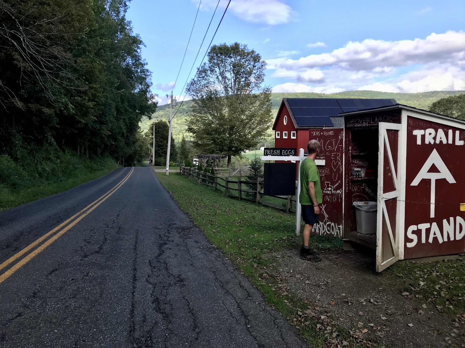 We are at La Bonne’s Market. It’s a really nice store. They have lots of premium grocery items and neat local stuff, like produce, granola, chocolate, snack bars and baked goods. I want to live in the store or at least buy enough for several meals, but as always I must settle for less and keep moving! It’s really hard not to buy too much. We get veggie sandwiches from the deli, a carrot apple ginger juice and some local plums. We pack some flatbreads, micro greens, pumpernickel bagels and bananas to go. They have nice tables in the shade outside and power outlets for us hikers to use. There is nice direct sun this afternoon which allows me to charge my luci light solar lantern. I use the luci light instead of a headlamp and with the days growing shorter we’ve been needing our lamps more and keeping it charged in the forested green tunnel of the AT has been a challenge. There is an old rail trail that takes us back to the AT, so we don’t have to walk on the road. We manage to get in and out of town in two hours. We saw Dakota and Collete there but they didn’t look like they were getting out any time soon! It’s easy to lose track of time in town.