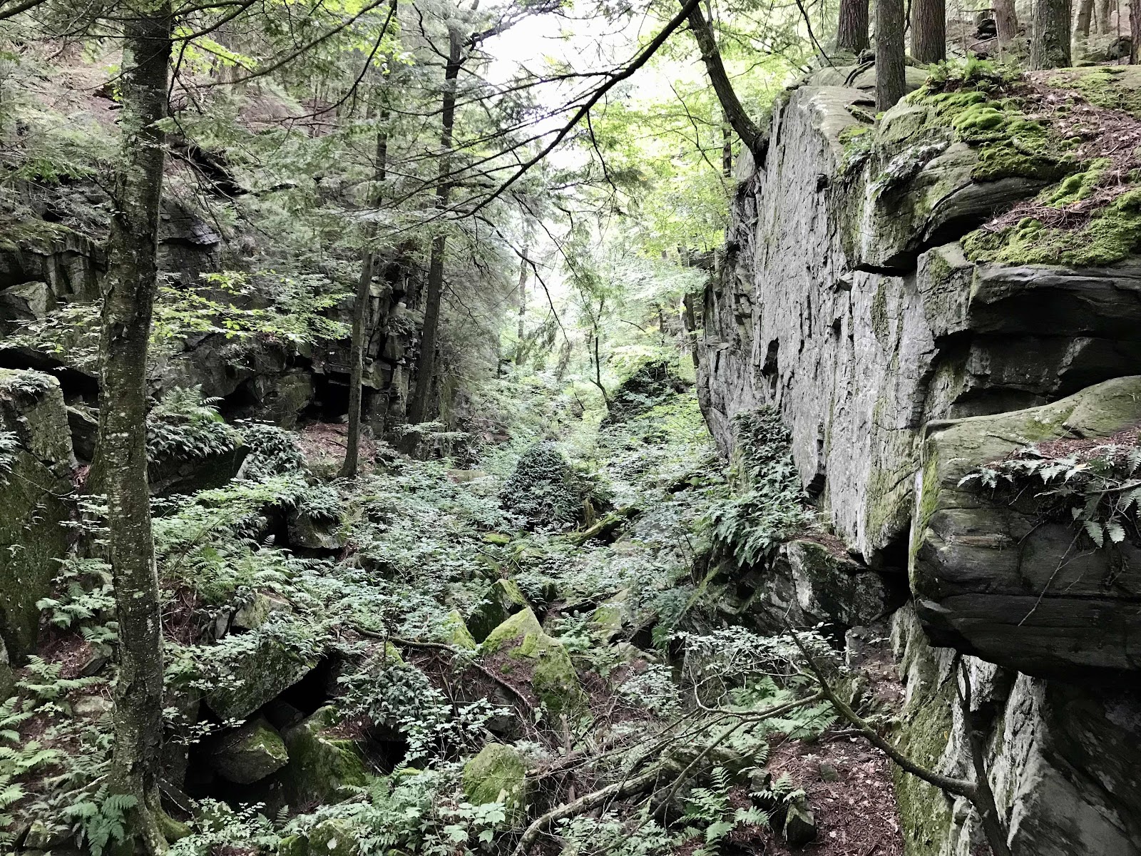 We go out of the valley and up onto a mountain that is mostly viewless, only to come back down to the same valley. The mosquitos that were mysteriously absent yesterday and this morning come back with a vengeance, leaving us unable to stop for a break. We hike for 3 hours straight, making it up and over the mountain and into the next town, Falls Village.