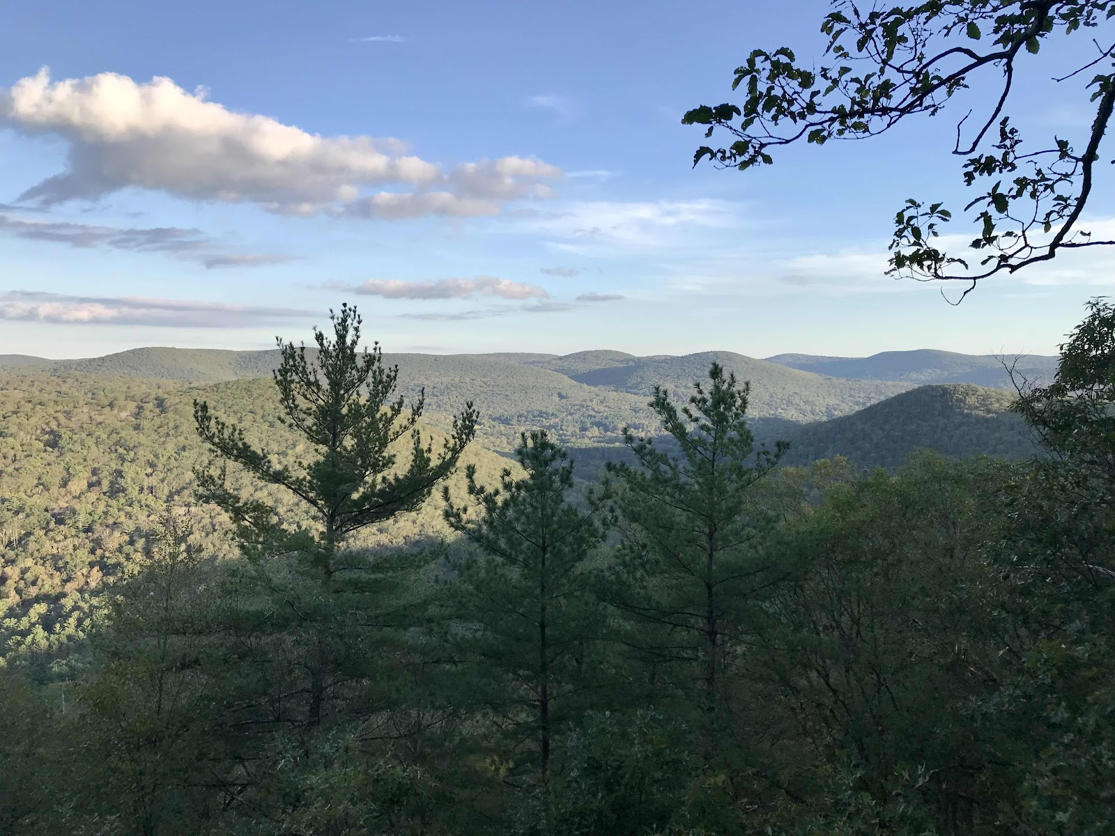 Our energy levels are a mystery to us. You would think after a big day yesterday and hiking late and not reclining for a terribly long time overnight that we’d be tired, but somehow we’re not! We have good energy all day! I think more interesting scenery helps to keep us more awake and energetic and today we have pretty open forest that lets light in and for much of the day we are walking along a forested ridge with occasional open ledges for long distance viewing.