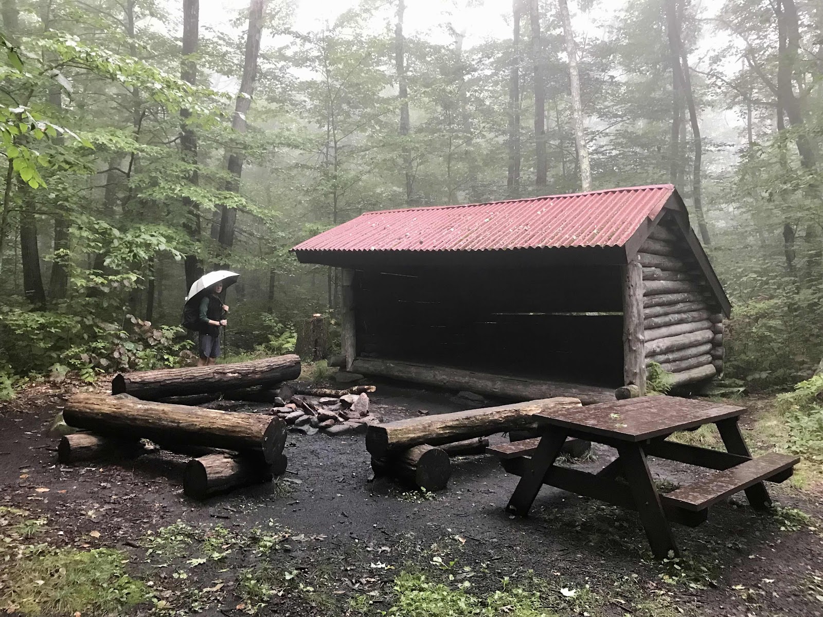 North Mt Wilcox shelter in the morning drizzle and fog